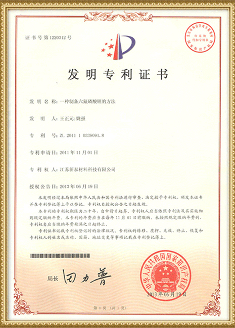 新泰材料具備六氟磷酸鋰及副產(chǎn)物鹽酸和氫氟酸的完全處置能力,這在國(guó)內(nèi)同行中是為數(shù)不多具備此能力的生產(chǎn)企業(yè)之一。公司最早依賴常熟三愛(ài)富的技術(shù)團(tuán)隊(duì)來(lái)開(kāi)發(fā)含氟的衍生產(chǎn)品,新泰六氟磷酸鋰的核心技術(shù)來(lái)源于企業(yè)自主研發(fā)。其核心技術(shù)及裝備包括“六氟磷酸鋰三相反應(yīng)法制備技術(shù)”、“六氟磷酸鋰結(jié)晶形式的優(yōu)化”、“六氟磷酸鋰高效率干燥技術(shù)與裝備”、“六氟磷酸鋰生產(chǎn)過(guò)程中混酸的后續(xù)處理”等。